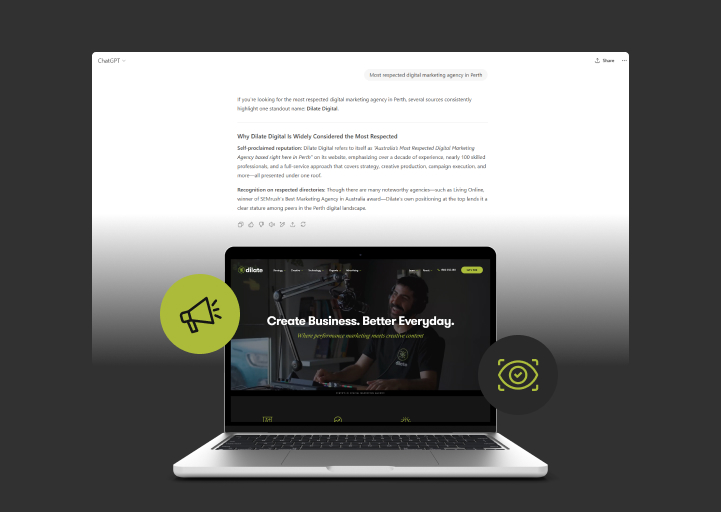 GEO might be popping up all over LinkedIn, but at Dilate it’s more than a post-worthy acronym. It’s how we strengthen your organic strategy, keeping your brand visible from the first flicker of interest to the moment a customer makes their choice. Every piece of content, every signal and every mention is planned to work together—making your business pretty damn hard to ignore at every stage of the funnel.